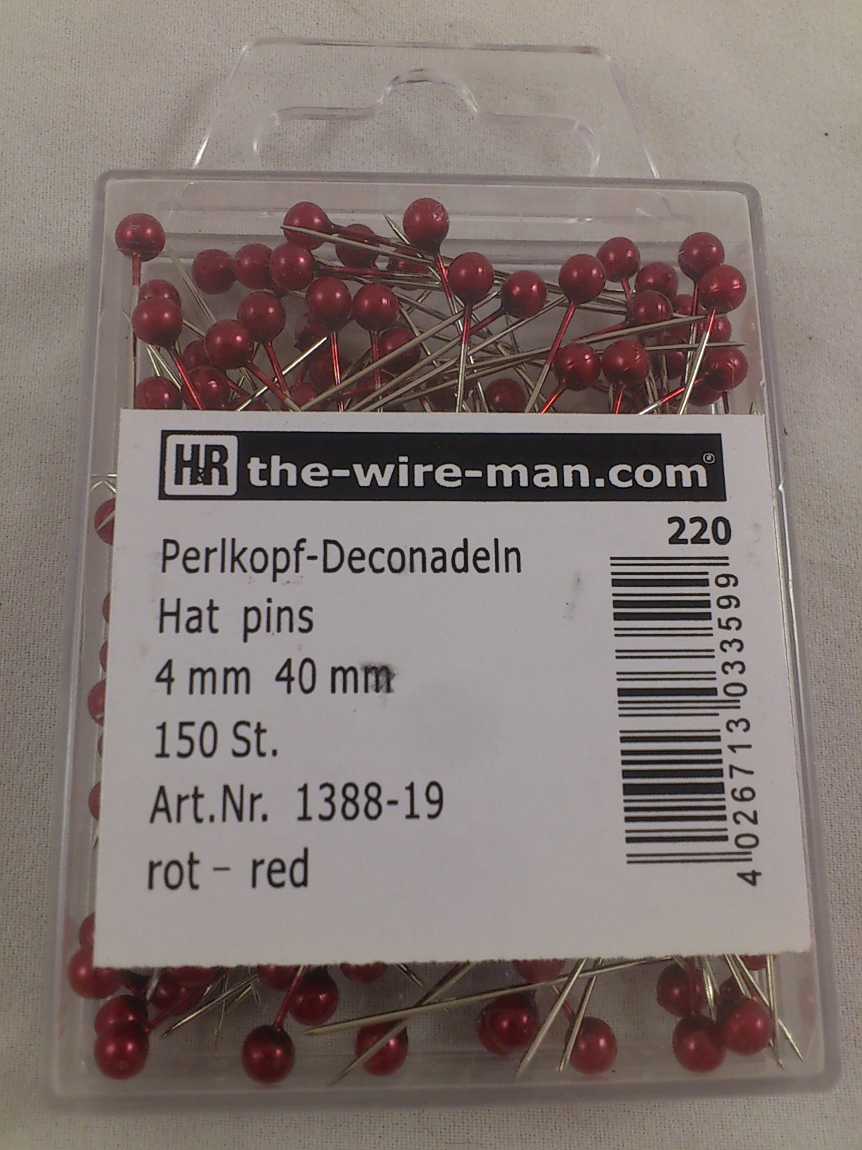 Epingles a tête coloris 4 mm 150 p. rouge